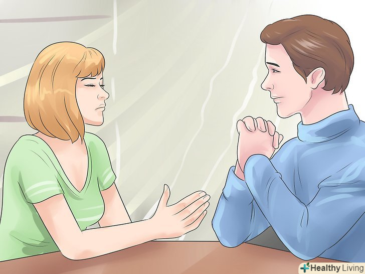 Спокійно все обговоріть.після того, як ви зробите основні перші кроки на шляху до вирішення проблеми, вам слід серйозно обговорити її рішення. Тут ключовим елементом є спілкування, і воно полягає не просто в тому, щоб озвучити свої думки. Подумайте, перш ніж говорити, і ретельно поміркуйте, як Ваші слова можуть бути сприйняті. Крім того, будьте дійсно хорошим слухачем, по-справжньому концентруючись на мові співрозмовника і працюючи над тим, щоб його зрозуміти.- Як правило, на подібні серйозні розмови необхідно виділяти досить багато часу і зустрічатися в тихому і відокремленому місці. Це дозволить усунути відволікаючі фактори і речі, які додають напруги.