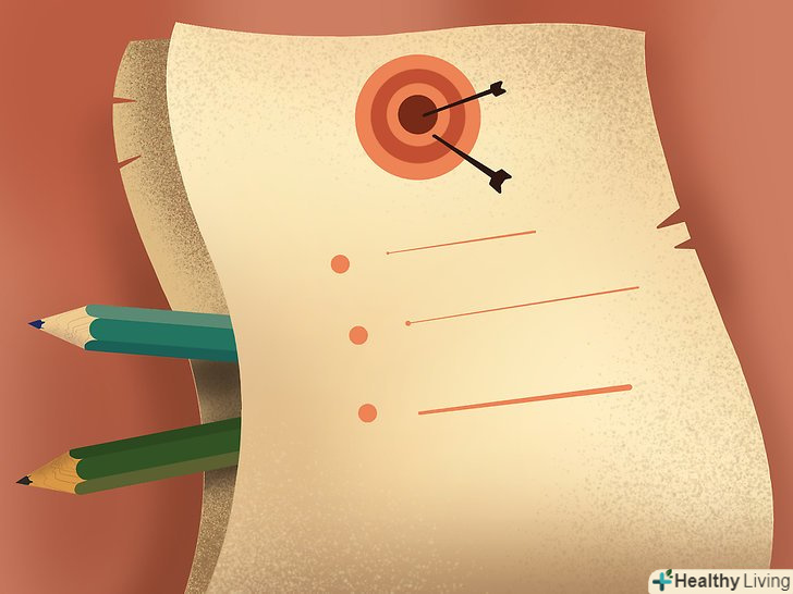 Визначте ваші цілі, записавши їх. встановіть реалістичні, досягнуті цілі, щоб не розчаровуватися, якщо не зможете досягти всього відразу ж. Робіть крок за кроком і мислите позитивно!
