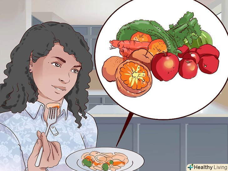 Дотримуйтеся здорової дієти.почуття постійного стресу або тривоги підвищує рівень кортизолу у вашому тілі, що негативно позначається на вашому апетиті. Однак, якщо ви погано харчуєтеся, ви будете почувати себе ще більш втомлено і без сил, ніж раніше. Дуже важливо насичувати організм поживною їжею і створювати цілющу обстановку для свого тіла.[17]- Дуже важливо змушувати себе регулярно їсти здорову їжу, навіть якщо у вас немає апетиту. Спробуйте їсти багато фруктів і овочів, цільні злаки і корисні білки.