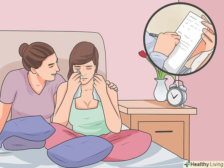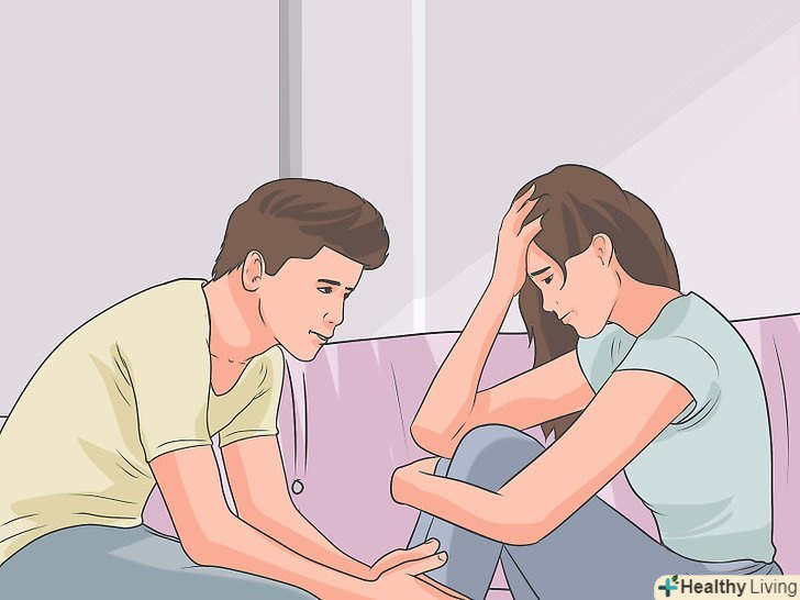 Порадьте їй звернутися за допомогою.як тільки ви помітили, що ваша подруга або родичка завдає каліцтва самій собі, дізнайтеся, може бути, вона хоче отримати допомогу від психолога, психіатра або консультанта. Ці фахівці пройшли спеціальне навчання, щоб допомагати людям долати поведінку, яка може завдати їм шкоди. Якщо ваша подруга скаже, що вона не божевільна, погодьтеся з нею. Скажіть їй, що люди звертаються до психологів з багатьох причин, часто вони роблять це заради особистісного зростання. Якщо їй страшно, що відвідування психолога накладе на неї як би друк ганьби, запропонуйте їй звернутися до фахівця з іншого міста. Це корисні та цінні послуги, які дійсно можуть допомогти їй впоратися зі шкідливою поведінкою. Професіонали краще підготовлені до того, щоб допомогти їй зрозуміти, чому вона заподіює собі біль, і чого вона намагається домогтися таким способом.[14]- Звернутися до фахівця просто необхідно, якщо ви серйозно ставитеся до здоров'я своєї близької подруги. Людям часто ніяково звертатися до психологів, але важливо переконати близьку людину піти лікуватися.[15]