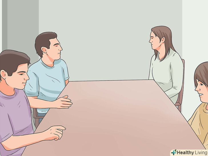 Порадьте їй відвідати групу підтримки.група підтримки - це зібрання людей, що мають однакові проблеми, однакові питання, які ведуть боротьбу з однаковими викликами, переживають схожий досвід у житті. Незважаючи на те, що ви самі якийсь час будете діяти як група підтримки в одній особі, їй може знадобитися спілкування з тими, хто точно знає, через які випробування вона проходить. Після того, як вона пройде якусь частину шляху разом з вами, вона може поступово дорости до того, що зважиться на зустріч з людьми, такими ж, як і вона сама, щоб дізнатися їх історії, їх розчарування, їх успіхи в боротьбі з самопошкодженням і причини їх невдач.[16]- Вона може проявити нерішучість або відмовитися піти в групу підтримки для тих, хто ріже себе. Щоб підбадьорити її, ви можете піти на зустріч разом з нею. Це додасть їй сміливості і забезпечить підтримку, необхідну для цього останнього кроку.