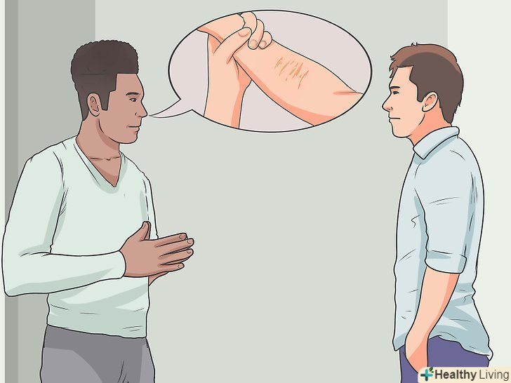 Нанесення ран самому собі-це вона з форм самоушкодження без наміру вчинити самогубство. Люди, які схильні до частого самопошкодження, як правило переживають самотність, порожнечу в серці, мають складні або дисфункціональні відносини. Люди, які ріжуть себе, можуть також страждати низькою стресостійкістю, через неадекватні комунікативних навичок вони часто не вміють висловлювати свої почуття і емоції. Можливо, в якийсь момент життя вони пережили травматичні події або піддавалися насильству: сексуальному, фізичному або емоційному.[1] якщо ви знаєте когось, хто, на вашу думку, завдає шкоди самому собі, знайте, що є способи допомогти такій людині.