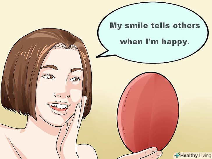 Зосередьтеся на позитивному.якщо ви оточені людьми і зображеннями зі ЗМІ, які твердять про те, що ваш зовнішній вигляд є еталоном непривабливості, ви незабаром почнете їм вірити. Ви можете стати жертвою особливо когнітивного спотворення « "фільтрації", при якому ви зосереджуєтеся на речах, які вам в собі не подобаються.[11] Справтеся з цим спотворенням, знайшовши в собі позитивні риси, на яких можна зосередитися.- Намагайтеся негайно знаходити в собі щось позитивне кожен раз, коли ви замислюєтеся про щось негативному в своєму зовнішньому вигляді. Наприклад, якщо ви проходите повз дзеркала і думаєте про себе: «нічого собі, мої зуби зовсім криві!", спробуйте врівноважити цю думку позитивною:»по моїй посмішці відразу можна зрозуміти, коли я щасливий".