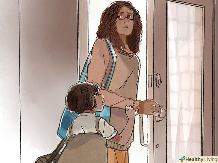 Сховайтеся в безпечному місці.плануючи втечу, подумайте про будь-які можливі ризики. Наприклад, якщо ви йдете разом з дітьми, переконайтеся, що ваш партнер не прийде за ними і не зашкодить їм. Ви з дітьми навіть можете сховатися в різних місцях, якщо ви турбуєтеся як за свою, так і за їх безпеку. Відправляйтеся в надійне місце, де ви будете захищені від свого партнера. Це може бути будинок друга, квартира батьків, брата/сестри, або спеціальний притулок.[14]- Завжди будьте обережні, коли розриваєте насильницькі відносини, навіть якщо це насильство проявлялося "тільки лише" в емоційному плані. Наприклад, ви можете зателефонувати на загальноросійську гарячу лінію для жінок, які постраждали від домашнього насильства 8-800-7000-600 (безкоштовно, анонімно, конфіденційно), щоб вам допомогли розробити безпечний план втечі. Додаткові номери центрів допомоги постраждалих від домашнього насильства дивітьсяздесь.
