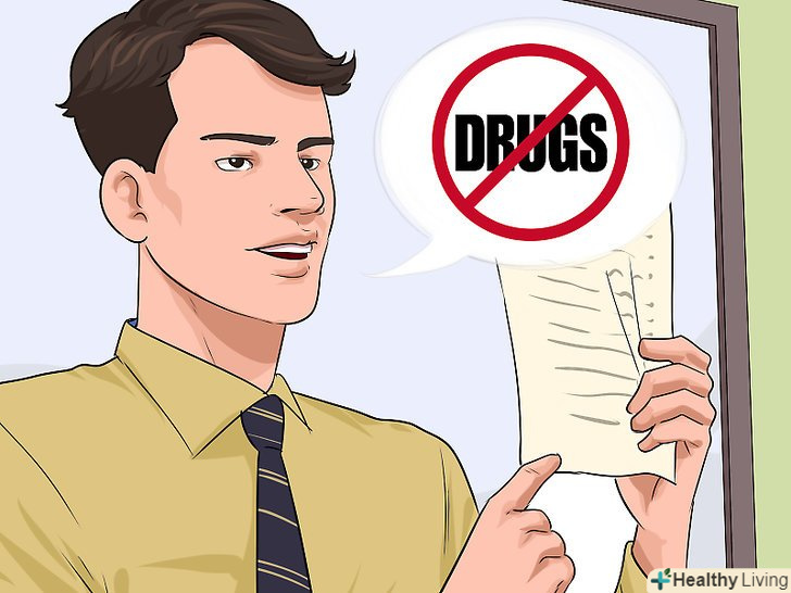 Можливо, ви захочете створити програму, що перевіряє на вживання наркотиків.Одним із способів захисту робочого місця від наркоманії є проведення тестів. При прийомі на роботу попередьте людину про те, що якщо він не пройде тест на залежність від наркотичних речовин, його попросять піти з компанії, якщо система виявить нелегальні наркотики.- Але працівникам необхідно дати деякий час, перш ніж встановлювати ці правила. Час необхідно дати для того, щоб ті, хто вживають наркотики, могли вчасно звернутися за допомогою.