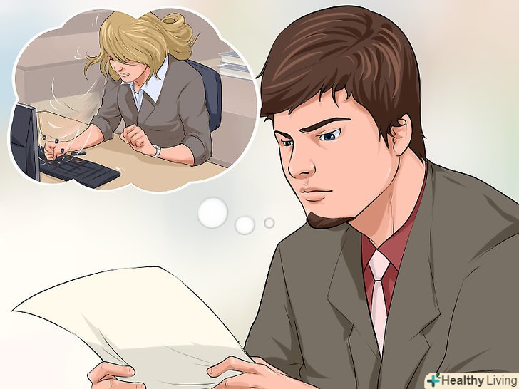 Доповісти начальству, якщо думаєте, що інші люди можуть бути в небезпеці.якщо ви турбуєтеся, що людина може нашкодити комусь у вашому офісі, ви повинні доповісти начальству про його поведінку. Не намагайтеся напоумити людину, якщо він поводиться агресивно або жорстоко.- Ви також повинні сказати іншим, щоб вони трималися на відстані від цієї людини. По можливості ізолюйте цю людину, поки не прийде начальство.