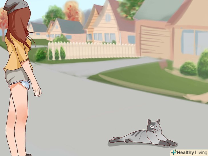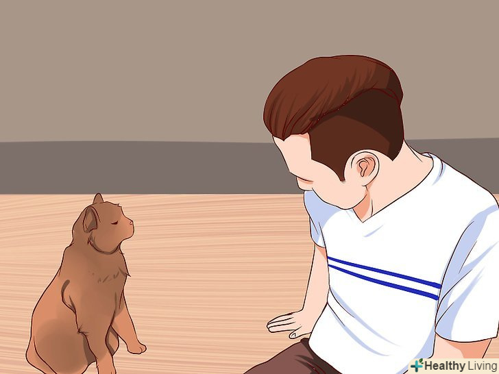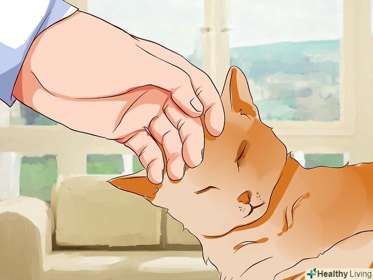 Погладьте кішку. Доторкніться до тварини. Почніть з декількох секунд і поступово збільшуйте цей час. Торкайтеся до кішки тільки в тих місцях, де їй це приємно. Є місця, в яких кішкам подобаються дотики, і місця, де кішку краще не гладити.[6]- Кішки люблять, коли їх гладять по шиї в місці, де з'єднується щелепа і череп. Більшості кішок також подобається, коли їх чешуть за вухами і між вухами і вусами.