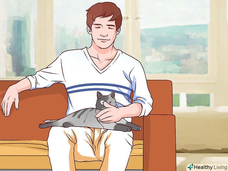 Потримайте кішку на колінах.коли ви зможете без страху гладити кішку, посадіть її до себе на коліна. Дозвольте їй сидіти на колінах на деякий час (так довго, як вам буде комфортно), а потім попросіть друга зняти кішку. Якщо ви зможете спокійно тримати кішку на руках, це буде означати, що Ви подолали страх кішок.