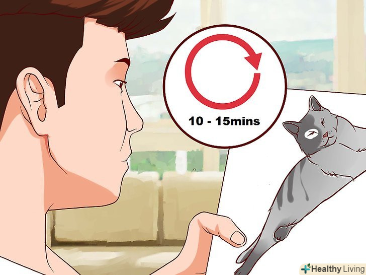 Попросіть друга посидіти поруч з вами, тримаючи кішку на колінах.це дозволить вам побути поруч з твариною, яка буде відчувати себе відносно вільно, але при цьому ваш друг зможе утримувати кішку, якщо буде потрібно. Посидьте 10-15 хвилин і йдіть. Продовжуйте виконувати вправу до тих пір, поки страх не пройде.- Пам'ятайте, що вам поки ще не потрібно торкатися до кішки. Важливо просто побути поруч з нею, щоб звикнути до тварини, не обмеженому перенесенням.