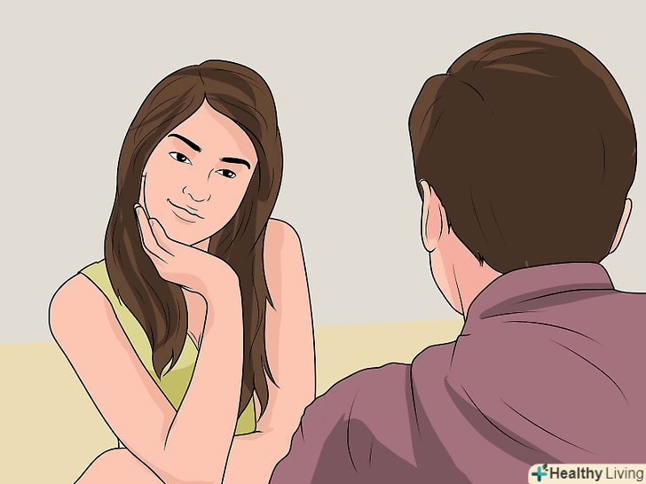 Дивіться в очі.при зустрічі дивіться людині в очі і не відводите погляд. Простий зоровий контакт підсилює любов і прихильність.[13]- Дивіться на людей з теплотою. Посміхатися. Ви здивуєтеся, скільки людей посміхнеться у відповідь.