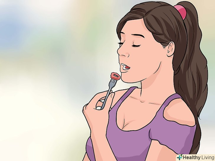 Насолоджуйтесь їжею з закритими очима.За відчуття смаку і запаху відповідають два окремих рецепторних органу, але ці два почуття переплітаються і впливають на те, як наш мозок визначає смак.[5]- Закривайте очі в момент кожного укусу. Повільно пережовуйте їжу, зосередьтеся на смаку, консистенції і запаху.