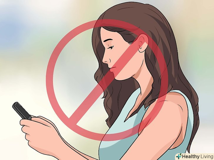 Відкладіть свій телефон.сама присутність телефону вже відволікає вас.[7] повідомлення або перевірка пошти задіють тунельний зір і блокують почуття. Озирніться навколо себе кожен раз, коли захочете потягнутися за телефоном. Зверніть увагу на колір очей бармена або тканину стільця, на якому ви сидите. Прислухайтеся до навколишніх звуків. Постарайтеся усвідомити все, що відбувається навколо вас.