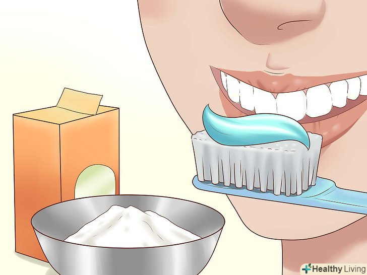 Спробуйте домашні відбілюючі засоби.якщо чищення зубів ниткою і щіткою виявилося недостатньо, спробуйте домашні відбілюючі засоби, щоб зробити зуби білими. Краще почати з них, оскільки вони обійдуться вам набагато дешевше, ніж покупні засоби для відбілювання зубів.- Додайте в зубну пасту трохи харчової соди і чистіть нею зуби протягом двох хвилин. Робіть це не частіше одного разу на тиждень, інакше можна пошкодити зуби.[2]