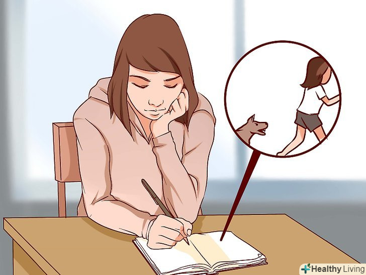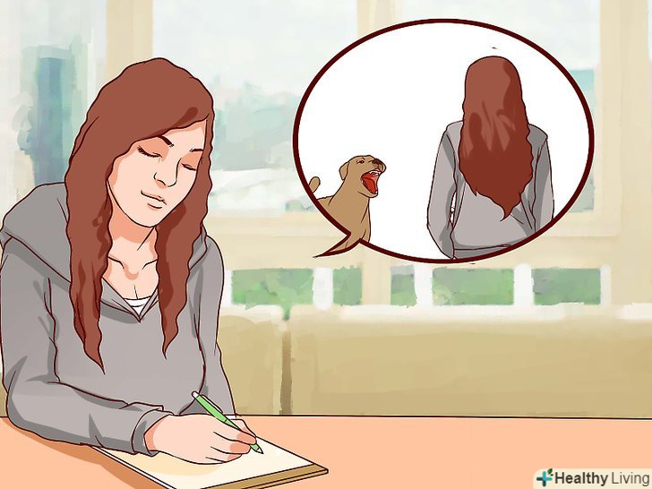 Подумайте про події, які провокують думки про страх.перший крок до перемоги над страхом полягає у визначенні причини страху. Для цього необхідно подумати і обговорити ваш минулий досвід взаємодії з собаками і спробувати зрозуміти, з чого почалася кінофобія. Іноді потрібно виявити конкретний провокуючий фактор. Ви боїтеся собак в цілому або лякаєтеся, якщо вони роблять певні дії (виють, гавкають, стрибають, бігають)?[10]- Також у співпраці з психотерапевтом можна виявити, чи обумовлена ваша фобія медичними і психічними причинами-захворюваннями, які підсилюють страх (тривожний розлад, депресія, а іноді навіть конкретні, нехай і не пов'язані з собаками події, які призвели до виникнення фобії).