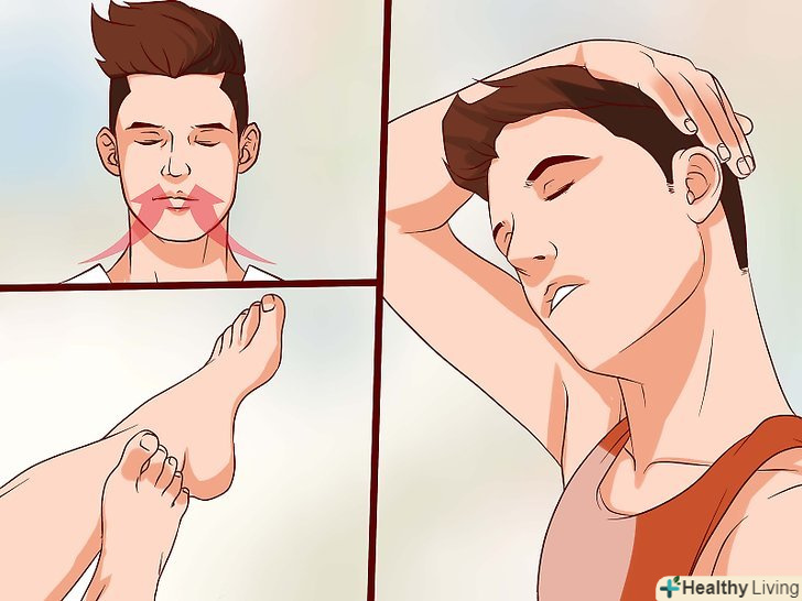 Застосовуйте прогресивну м'язову релаксацію.стривожені люди схильні напружуватися, хоча їм здається, що вони розслаблені. Прогресивна м'язова релаксація допомагає розрізняти напружений і розслаблений стан, щоб своєчасно розслабляти м'язи. Виконуйте наступні дії два рази в день, поки не відчуєте різницю між двома станами вашого організму.[20]- Знайдіть спокійне місце, зніміть взуття, займіть зручне положення сидячи і закрийте очі.