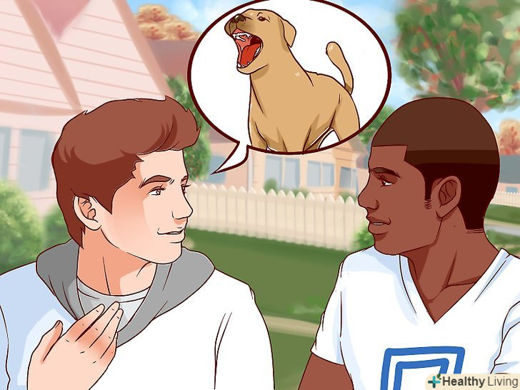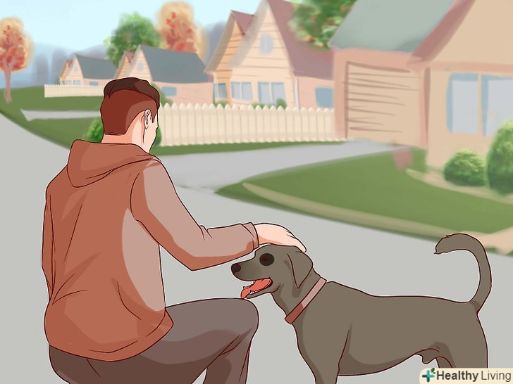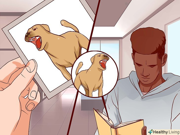 Зверніться за допомогою до надійного друга, у якого є собака.на певному етапі вам доведеться перебувати поруч зі справжньою собакою. Важливо, щоб собака слухалася компетентного і надійного людини, була дресированою і поводилася передбачувано. Поговоріть з власником собаки заздалегідь, щоб пояснити ваш план і мету. Людина з собакою повинна бути терплячою і розуміючою, оскільки іноді їй доведеться просто сидіти з собакою, щоб ви звикали до присутності тварини.[26]- Для вашої мети краще не використовувати цуценят, навіть якщо ви вважаєте їх милими або менш небезпечними. Цуценята погано слухаються і поводяться непередбачувано. Щеня може зробити щось несподіване у вашій присутності і тим самим посилити ваш страх.