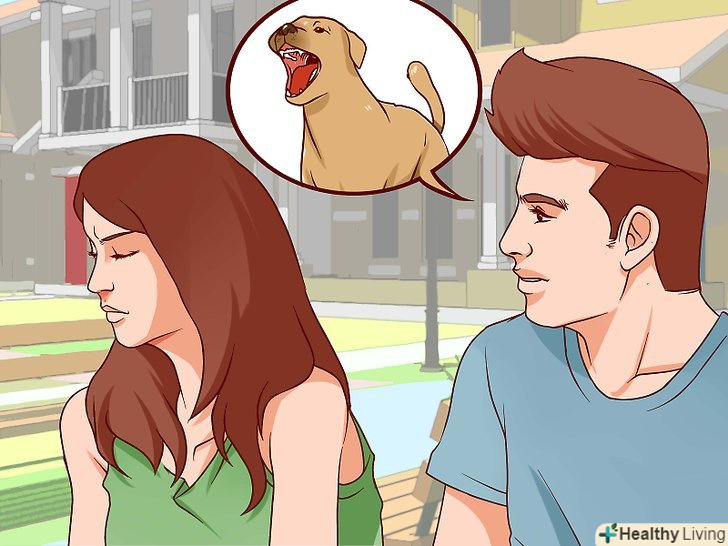Визначте, наскільки страх змінив ваше життя.на жаль, іноді страх стає таким сильним, що для спокою виникає необхідність повністю ізолювати себе від причини страху. Наприклад, якщо з острахом польоту все досить просто — можна ніколи не літати, то у випадку з собаками такого виходу немає. В одній тільки Росії налічується близько 19 мільйонів собак, тому повністю уникати зустрічей з цими тваринами неможливо. Подумайте, чи здійснюєте Ви зазначені нижче дії, щоб не перетинатися з собаками. При позитивній відповіді ви напевно відчуваєте страх перед собаками.[5]- Ви уникаєте зустрічей з певними людьми, оскільки у них є собака?