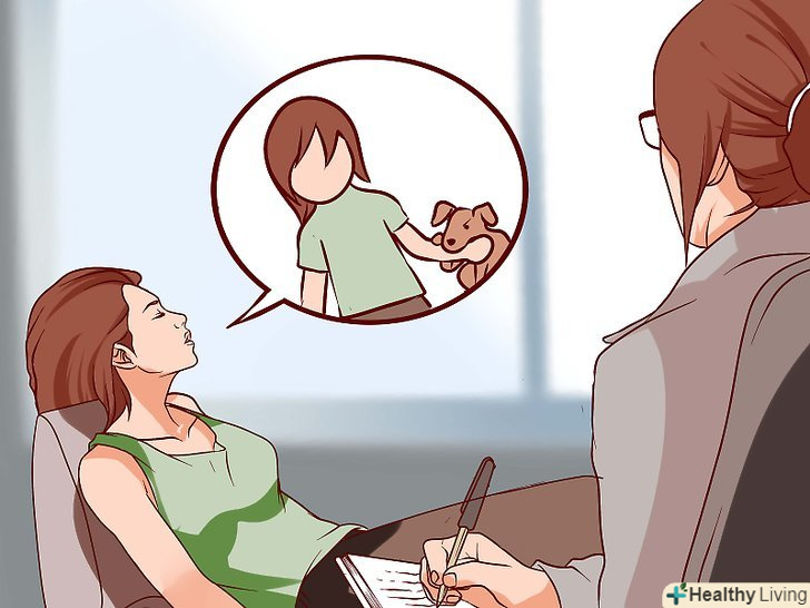 Зверніться за допомогою до психотерапевта.це зовсім не обов'язково, але психотерапевт допоможе вам позбавитися від страху і тривоги за допомогою психотерапії. Фахівці успішно лікують фобії. Зазвичай використовується метод когнітивно-поведінкової терапії (КПТ), який допомагає змінити образ думок і набути необхідних навичок. Також фахівці використовують експозиційну терапію, щоб ви могли контролювати емоції в присутності собак.[8]- Спробуйте знайти підходящого фахівця в вашому місті за рекомендаціями знайомих або за відгуками в Інтернеті. Враховуйте спеціалізацію психотерапевта, оскільки він повинен мати досвід роботи з конкретною фобією.