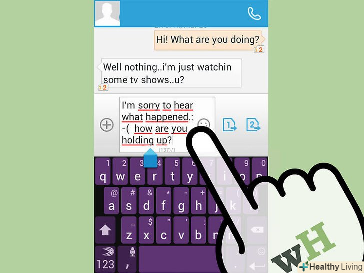 Висловіть підтримку через СМС.можливо, ця людина отримала погану оцінку на іспиті, програв у важливій грі або пережив втрату, наприклад смерть домашнього улюбленця або близької людини. Напишіть йому в СМС щось на кшталт: "Мені так шкода. Як ти?»