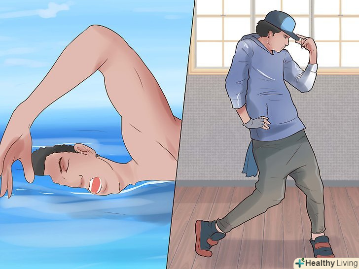 Ведіть активний спосіб життя.щоб стати здоровішими, слід регулярно займатися спортом. Це не означає, що вам потрібно годинами пропадати в тренажерному залі. Досить грати у волейбол, плавати або танцювати — тобто займатися тим, що вам подобається. Що б ви не робили, регулярні фізичні заняття допоможуть вам спалювати калорії, отримувати задоволення від свого виду в дзеркалі, заряджатися енергією і позбавлятися від стресу.[10]