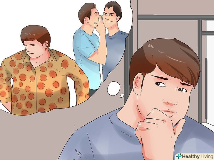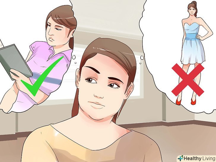 Запитайте себе, чи дійсно інші засуджують вас.якщо ви не змогли знайти причину невпевненості в собі, це може означати, що ці почуття знаходяться на більш глибокому рівні всередині вас. Можливо, ви відчуваєте себе невпевнено через стандарти краси, про які йдеться в засобах масової інформації. Можливо, ваша фігура не схожа на фігури моделей або актрис, і ви засмучуєтеся. Можливо, ви намагалися схуднути в минулому, але у вас не вийшло, і ви картаєте себе за це.[2]- Настав час розібратися зі стандартами краси. І жінки, і чоловіки ідеалізують бездоганні тіла, які показують по телевізору і в журналах, піддаючи знімки ретуші. Нагадайте собі, що фігури бувають самими різними. Озирніться навколо, і ви побачите багато красивих людей з різноманітними фігурами.[3]