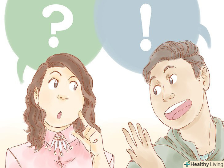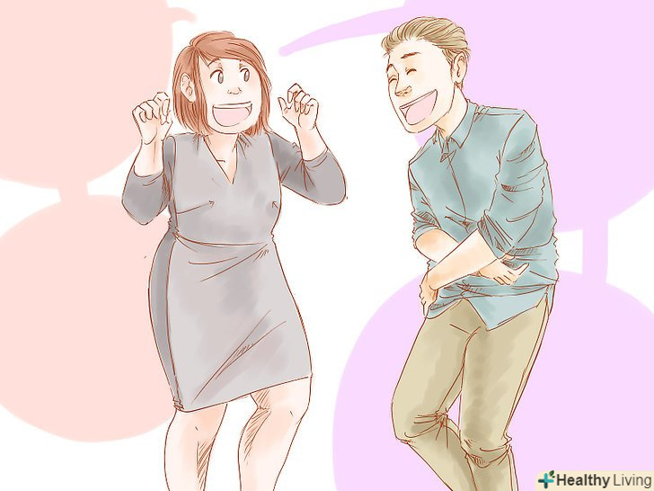 Ведіть себе впевнено.мовою свого тіла демонструйте впевненість в собі, щоб доповнити вдалу фразу Для початку бесіди і теми для обговорення. Тримайте голову прямо і підтримуйте зоровий контакт. Стійте рівно і не сутультесь, щоб не виглядати переляканим.[3] намагайтеся не заламувати руки, не смикати одяг або речі.- Хвилюватися абсолютно нормально. Фокус в тому, щоб не видати себе. Це звучить дивно, але спробуйте тренувати поставу перед дзеркалом. Необхідно виявити всі свої нервові звички і позбутися від них.