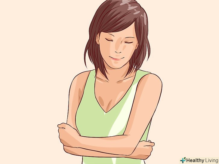 - Поплескайте себе по плечу. Це не зовсім обійми, але може принести вам таку ж користь. Просто підніміть руку вздовж грудей і до протилежного плеча. Потім можете дістати до спини і гарненько себе по ній поплескати.
