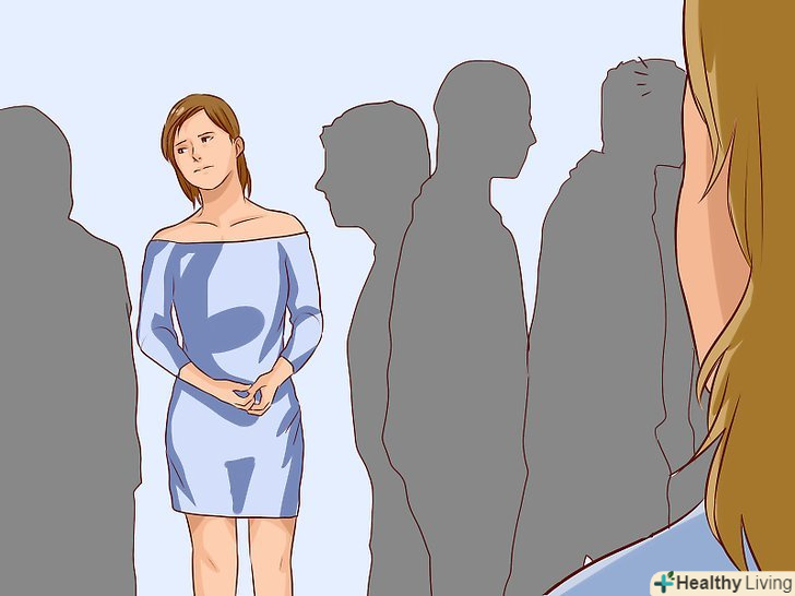 На громадських заходах зверніть увагу на людей, які надані самі собі.ймовірно, ці люди так само сором'язливі, як і ви. Хоча вам може бути незручно підходити до них через вашу сором'язливості, постарайтеся хоч якось з ними зблизитися. Якщо ви здатні почати розмову, чудово. Якщо ні, то просто будьте поруч і, може, ваш потенційний співрозмовник першим привітається.- Коли ви підходите до когось, легше почати знайомство з жартом про те, як важко бути сором'язливим. Наприклад:"ці заходи даються мені нелегко, тому що я іноді жахливо соромлюся". Навіть просто визнання цього вголос допоможе вам прийняти свою сором'язливість.