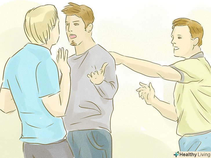 Якщо ви відчуваєте себе в безпеці, втрутіться негайно, але залишайтеся спокійним.найкраще втрутитися наскільки можливо раніше, до того, як ситуація загостриться. По можливості, заручіться підтримкою людини, не залученого в цю ситуацію.- Важливо відзначити, що деякі групи під більшим ризиком, ніж інші. Якщо знущання проти лесбіянок, геїв, бісексуалів та транссексуалів( ЛГБТ), інвалідів або знущання засновані на расизмі, етнічному походженні або вірі, повинні бути вжиті особливі заходи. Ви можете знайти специфічну інформацію про ці групи тут.[1]