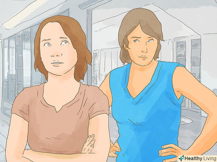 Стійте на шляху інших людей.[7][8][9] якщо ви будете фізично займати простір, який намагається перетнути інша людина, йому доведеться або зіткнутися з вами, або відійти в сторону. Більшість людей захочуть уникнути прямого зіткнення і або запитають, чи можете ви їх пропустити, або прослизнуть мимо, не потурбувавши вас. У будь-якому випадку ви будете виглядати страхітливо.- Спробуйте виконати цей прийом, блокуючи коридори, сходові прольоти, дверні прорізи та інше.
