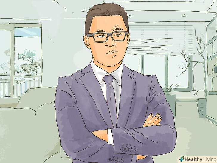 - Костюм, акуратне плаття і інший Діловий одяг дозволяють випромінювати владу.[21] якщо ви намагаєтеся виглядати страхітливо, ймовірно, вам варто одягатися трохи краще за інших. Наприклад, якщо стандартний дрес-код на вашому робочому місці є повсякденно-діловим, можна здатися трохи страхітливим, якщо одягнутися повністю офіційно.