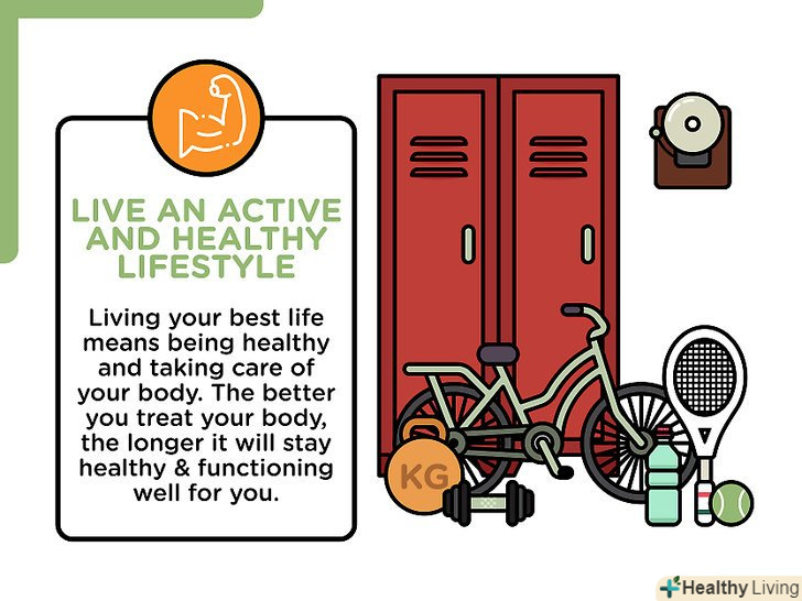 Ведіть активний і здоровий спосіб життя.жити кращим життям означає Піклуватися про здоров'я свого тіла. Чим краще ви звертаєтеся з власним організмом, тим довше він вам прослужить. А це означає, що здоров'я в більш старшому віці дозволить вам і далі жити кращим життям, так що вона триватиме довше.- Дорослим слід приділяти щонайменше півгодини на день фізичним вправам.[12]