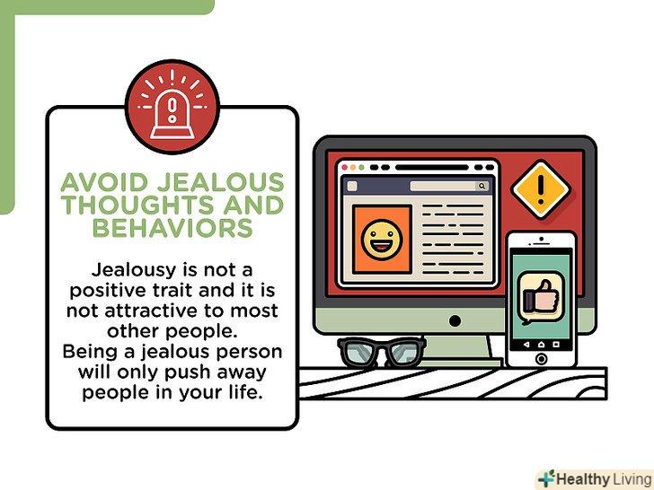 Намагайтеся уникати заздрісних думок і вчинків.заздрість-далеко не позитивна риса і не привертає до себе інших людей. Заздрість може лише відштовхнути від вас оточуючих. А заздрість до того, чим володіють інші люди, безглузда, оскільки все це в довгостроковій перспективі не має значення. Коли все закінчиться, ви нічого з собою не заберете![10]- Якщо ви відчуваєте, що вас долає заздрість, постарайтеся зосередитися на тому, що є увас, а не у інших. Думайте про все, за що ви вдячні у своєму житті, і практикуйте стан подяки.