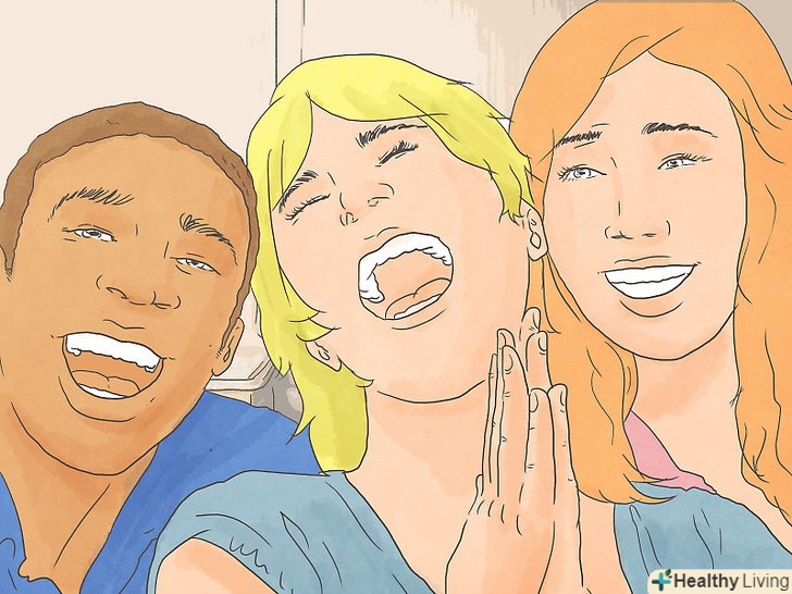Приділяйте більше уваги сміху.будь-якій людині сміх не зашкодить. Чим більше ви будете сміятися, тим більше ви будете подобатися собі, і не має значення, що ви будете робити: жартувати самі, спілкуватися з людьми, які можуть вас розвеселити, або дивитися по комедії в тиждень. Ви станете радісніше і будете менше нервувати, а це допоможе вам боротися зі стресом і позитивно позначиться на здоров'ї.[26] навіть посмішки покращать настрій, і ви будете схильні більше сміятися.[27]- Коли ви смієтеся від душі, вам ніколи сумніватися в собі. Щирий сміх допоможе вам відчути момент і порадіти тому, хто ви є.