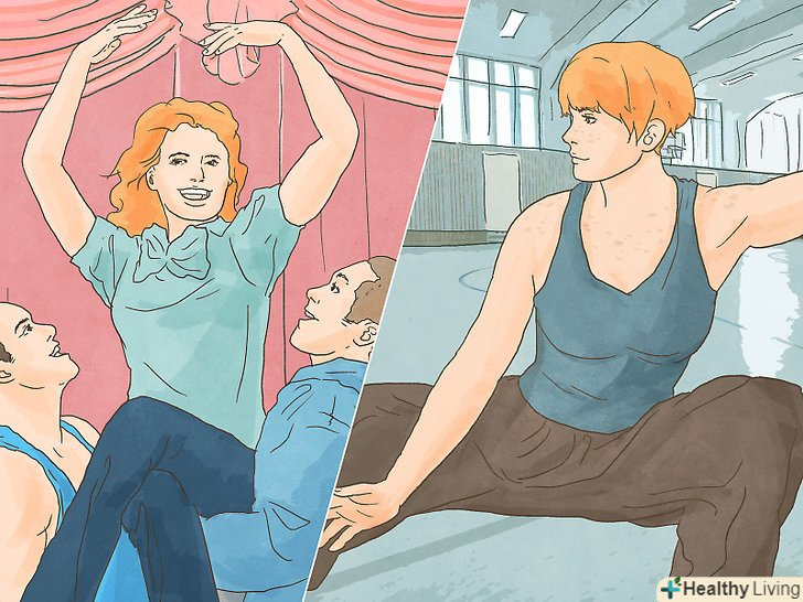 Танцюйте.танець дозволить вам краще розуміти своє тіло, розкріпачуватися і бути задоволеним собою. В ході досліджень було встановлено, що найрізноманітніші танці, якими займаюся найрізноманітніші групи людей, роблять людину щасливішою і допомагають позбутися від стресу.[22] це зміцнить вашу впевненість у собі.- Не знаєте, з чого почати? Запишіться на заняття для новачків. Не любите групові заняття? Засуньте штори, включіть музику і потанцюйте наодинці з собою вдома. Вам потрібна допомога інструктора? Купіть диск із записом відеоуроків танців або знайдіть уроки на YouTube.