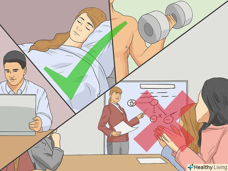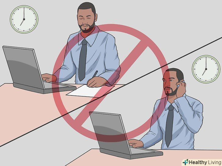 Робіть перепочинок.якщо не планувати час відпочинку, то ви ризикуєте вигоріти і зірватися. Завжди пам'ятайте про вечерю в кінці робочого дня або зовсім інших справах. Ви повинні знати час закінчення роботи, щоб не перевантажувати себе, так як перевтома загрожує зниженням якості роботи.[12]- Плануйте перепочинок, навіть якщо вам потрібно вже завтра здавати курсову роботу, так як вони допоможуть вам зібратися з силами для фінального ривка.