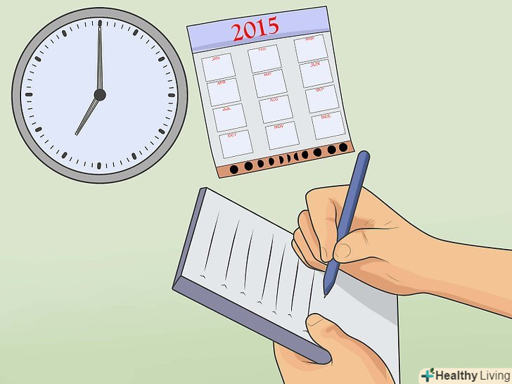 Складіть розклад.багато хто не любить вносити всі справи в один календар, але розклад і не повинно бути всеосяжним. Коли ви збираєтеся приступити до певної задачі, то не пошкодуйте п'яти хвилин, щоб скласти список, план або відповідний розклад.[6] якщо задати собі контрольовані часові рамки, то вам буде простіше сконцентруватися на завданні.[7]- Тимчасові обмеження або встановлені рамки для конкретних завдань також допомагають вам розбити їх на зручні сегменти, завдяки чому вам буде простіше пережити черговий робочий день.[8] така тактика може бути застосована для всього: домашніх завдань, офісних проектів і навіть ремонту в квартирі.