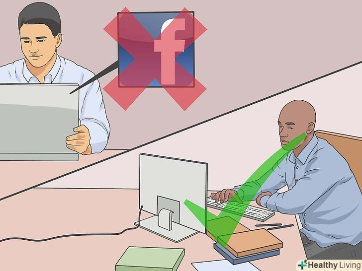 Інтернет. він майже завжди знаходиться на відстані витягнутої руки, тому не дивно, що ми постійно протистоїмо спокусі відкрити сторінки зі списку закладок. Якщо перед вами стоїть важливе завдання і не можна втрачати ні хвилини, то постарайтеся просто не заходити в Інтернет, щоб не баритися.[1]- Якщо однієї сили волі недостатньо (або ще гірше – виконувана робота безпосередньо пов'язана з використанням Інтернету), то можна встановити засоби для блокування сайтів для різних браузерів. Просто запустіть програму в потрібний момент і дозвольте їй тимчасово замінити вашу силу волі.[2]