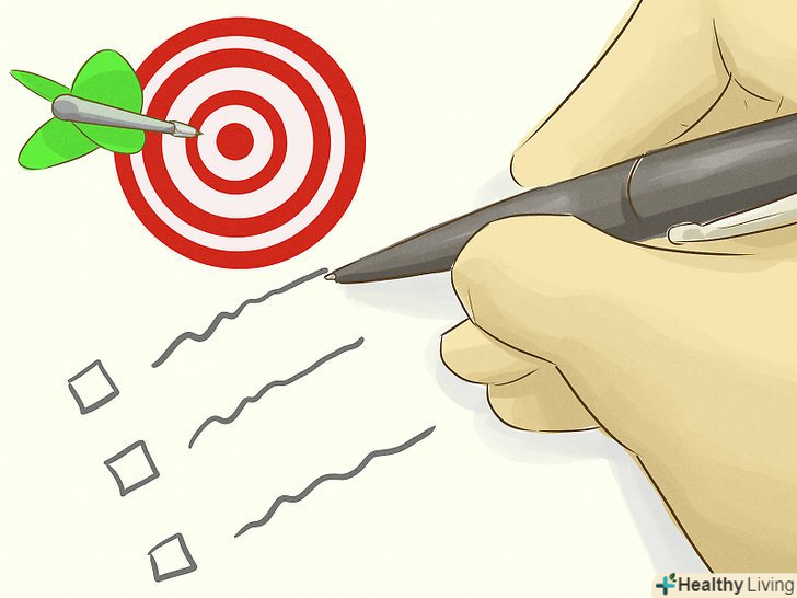 Ставте цілі, які зроблять вас щасливим.Установка цілей допоможе вам досягти того, чого ви хочете від життя. Спробуйте придумати кілька цілей, які допоможуть вам прийти до своєї мрії. Прагніть до цілей, які принесуть вам щастя, а не до цілей, якими рухають поверхневі бажання, такі як гроші або престиж.[13]- Наприклад, можна почати з мети писати 500 слів в день. Робіть це тому, що любите писати, а не тому, що хочете стати знаменитим письменником.