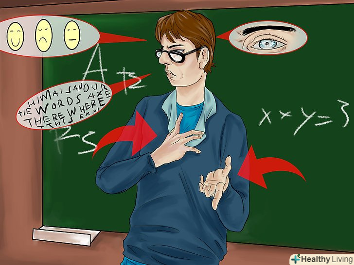 Звертайте увагу на мову тіла і слова.часто ми бачимо лише те, що хочемо бачити, і часто це помилковий погляд.[19] замість того щоб покладатися на інтуїцію або перше враження, спробуйте звернути свою увагу на мова тіла і слова, щоб зрозуміти людину.- Чим краще ви будете знати людину, тим точніше зможете розрізняти ситуації, коли щось не так.