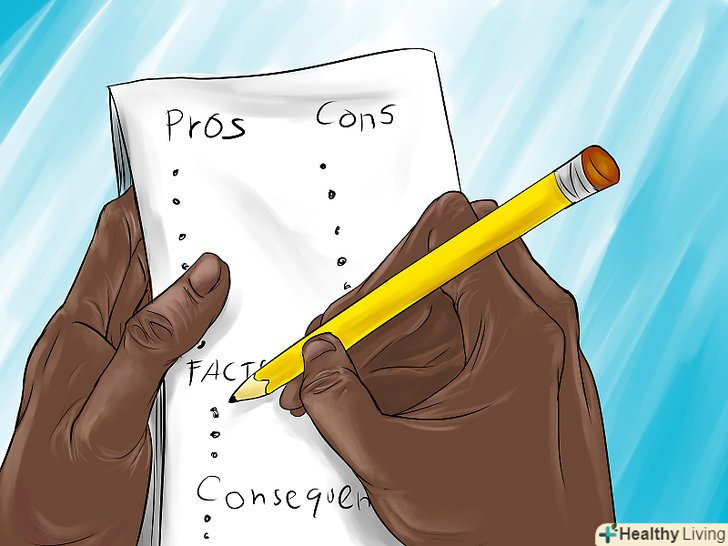 Задійте мозок. [24] перш за все слід розглянути всі доступні варіанти. Зважте всі доводи за і проти, факти, наслідки і можливі рішення.- Можна навіть записати всі ці нюанси або надрукувати в текстовому редакторі.