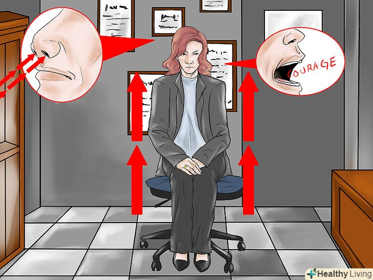Слухайте свій внутрішній голос.якщо ви вже задіяли мозок і серце, прийшов час прислухатися до інтуїції. Сядьте рівно, дихайте глибоко і розслабтеся. Згадайте момент, коли ви відчували прилив сил і сміливості, а також скажіть слово «сміливість» на видиху.[26]- Прислухайтеся до свого внутрішнього голосу, знову обміркуйте рішення, враховуючи доводи за і проти, факти, наслідки і всі доступні варіанти.