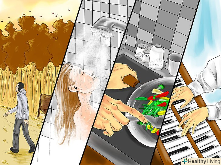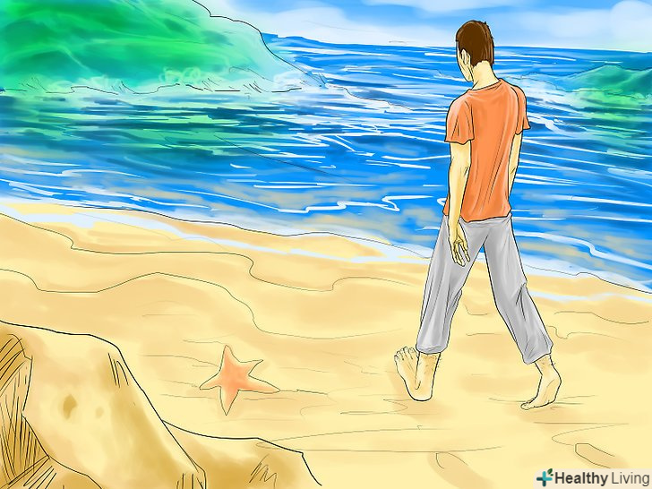 Ходіть на усвідомлені прогулянки.якщо вам особливо складно заспокоїти свідомість для медитації, то спробуйте прогулятися. На прогулянці не забувайте про усвідомленість, звертайте увагу на всі свої відчуття і дихання, а також види, запахи і звуки навколо.- Ходьба-це ефективний спосіб поліпшити настрій і очистити свідомість. У ясній свідомості зазвичай простіше приймати складні рішення.[11]