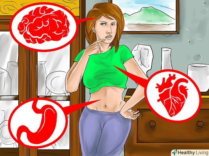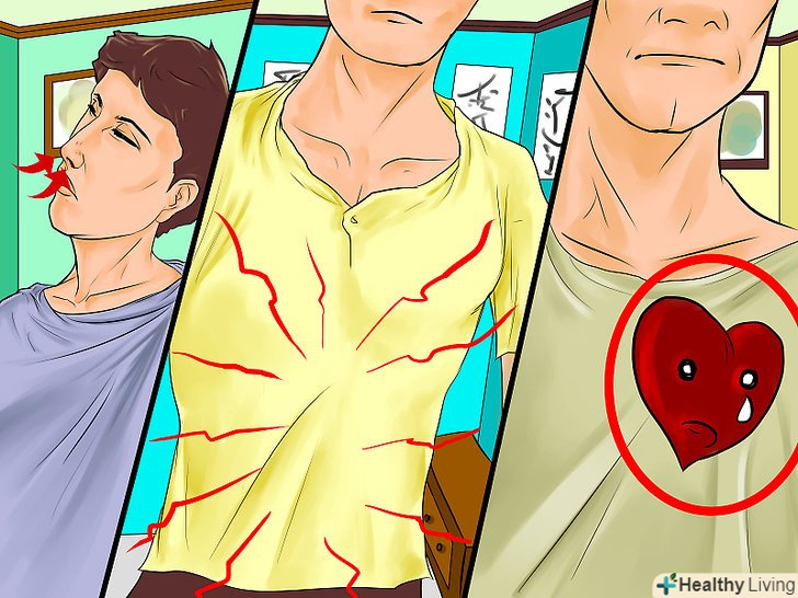 Звертайте увагу на тілесні відчуття.зокрема, звертайте увагу на дихання, відчуття в животі і грудній клітці. Прискорене дихання, розлад шлунка або важкі почуття на серці — це спроба організму повідомити вам, що щось не так.[12]- Дослідження показують, що тіло часто розбирається в ситуації раніше мозку. У учасників одного дослідження спостерігався прискорений пульс і спітнілі долоні задовго до того, як вони усвідомили, що знаходяться у важкій ситуації.[13]