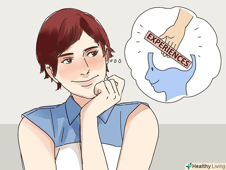 Розгляньте свою відкритість до нового досвіду.відкриті люди легко сприймають зміни і новий досвід, постійно вчаться. Їм властива гнучкість і цікавість, вони сприймають життя як можливість досліджувати нове.[10] більш закриті люди консервативні, вони вважають за краще заведений порядок і традиції новим відчуттям.[11]- Відкриті люди можуть заявити:"це можливість випробувати нові відчуття, які виявляться незабутньою пригодою з приголомшливими людьми".