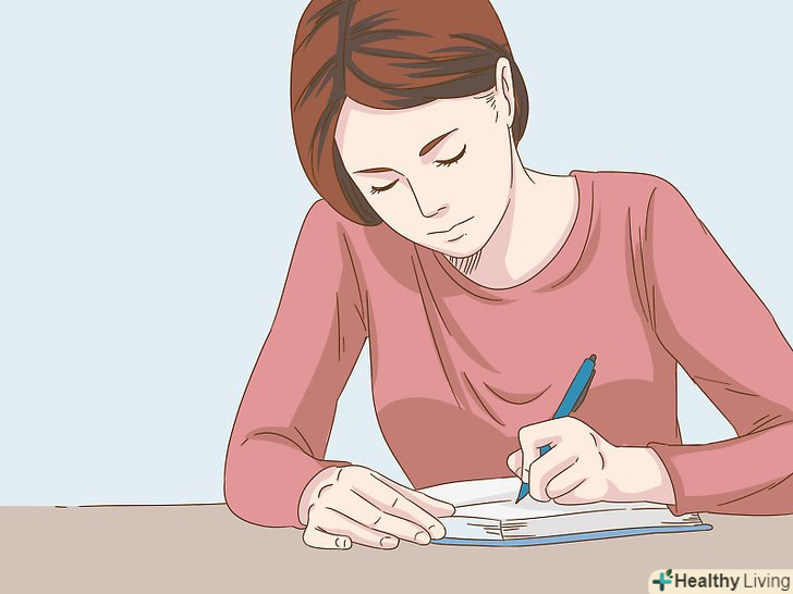 Запишіть причини свого страху.у момент переляку візьміть ручку з папером і запишіть все, що вас лякає. Дана вправа допоможе усвідомлено проаналізувати ваші страхи. Визнайте їх, щоб опустити.[3]- Багато лякають речі грунтуються на первісних страхах на кшталт страху смерті (наприклад, потенційно злоякісна родимка) або страху нікому не сподобатися (прийняти запрошення на вечірку і познайомитися з новими людьми).