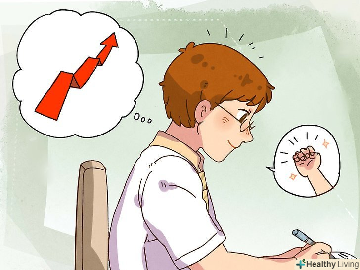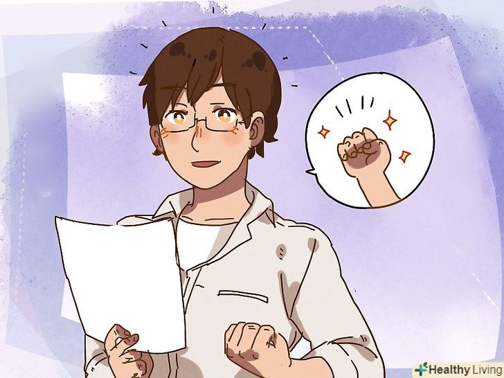 Нагадуйте собі, що ви намагаєтеся на повну.не слід тиснути на себе, потрібно ставитися до себе з добротою і розумінням. Щоб виростити в собі завзятість, самооцінку і почуття власної гідності, вам не слід зациклюватися на тому, що не виходить. Щоб полум'я цілеспрямованості і далі висвітлювало вам шлях до успіху, вам слід тримати в голові думки про те, що ви намагаєтеся на повну – виходячи з об'єктивних обставин, звичайно ж. [16]- Якщо ви завжди будете намагатися на 100%, причому незалежно від результату, то на вас буде тиснути менше стресу, а зосередитися на тому, чим ви можете управляти, буде простіше. Так ви зробите себе сильніше і впевненіше, а заодно і перестанете хвилюватися і переживати через все те, що не можете контролювати. Ви доклали всіх зусиль? Ось вам і успіх![17]