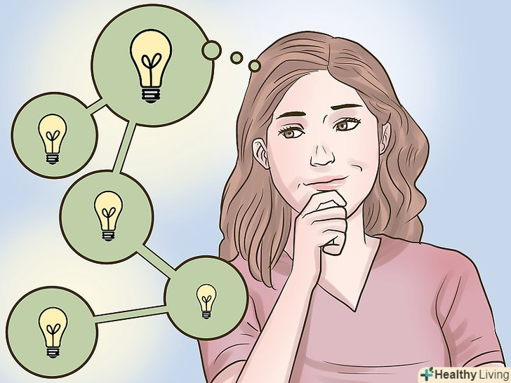 Підштовхуйте себе на придумування нових ідей.займайтеся діяльністю, яка буде активно змушувати вас придумувати нові ідеї. Наприклад, грайте в словесні асоціації, записуючи одне слово, а потім будь-які інші слова, які з ним пов'язані. Використовуйте аналогію, щоб знайти подібність між двома, здавалося б, несхожими речами, щоб деталізувати і вивчити свої асоціації з кожною з них.[12]- Наприклад, пошукайте схожість між підручником і плеєром iPod.