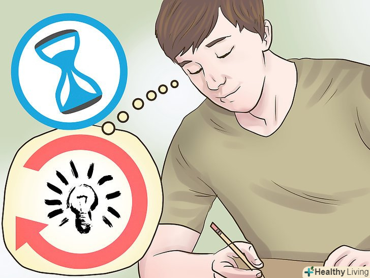 Виділіть час для мозкового штурму.креативність вимагає практики, тому кожен день знаходите час, щоб усамітнитися в спокійному або надихаючому місці і генерувати нові ідеї. Наприклад, відвідайте тихий парк або посидьте в бібліотеці і пустіть думки у вільне плавання. Записуйте всі свої ідеї (неважливо, хороші вони чи погані) в зошит, планшет або на комп'ютер. Не зупиняйтеся, щоб відредагувати або переосмислити їх.[13]- Регулярно знаходите зручний час. Наприклад, якщо ви завжди вільні після обіду, виділіть годину після їжі, позбудьтеся від відволікаючих чинників і присвятіть себе новим ідеям.