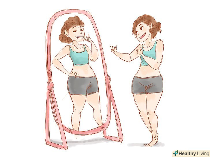 Розвивайте позитивне ставлення до свого тіла.у сучасному суспільстві можна легко приписати собі надмірну вагу. Важко добре до себе ставитися, якщо постійно натрапляєш на фотографії дуже струнких знаменитостей. Намагайтеся не забувати, що ці зображення часто обробляють в фоторедакторах. І навіть невідредаговані форми часто недосяжні для більшості людей.[4]- Пам'ятайте, що тіла у всіх різні. Люди відрізняються за вагою, статурі і швидкості метаболізму.